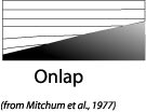 A base-disconrdant relation in which initially horizontal strata terminate progressively against an initial inclined surface, or in which initially inclined strata terminate progressively updip against a surface of greater initial inclination. (Mitchum, AAPG Memoir 26).