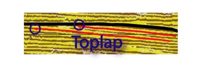 Termination of strata against an overlying surface mainly as a result of nondposition (sedimentary bypassing) with perhaps only minor erosion.