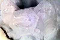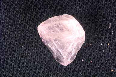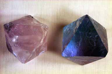 The clear, glassy properties of this specimen might confuse it with quartz (right). But look more carefully, and you can see cleavages cutting through the mineral (which quartz does not have). These cleavages also form acute angles, typical of the Octahedral type. And if you could rotate the specimen a little you would be able to count the four cleavage faces.