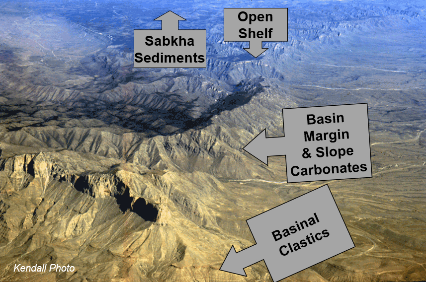 Arial overview of the Guadalupe Mountains depositional settings