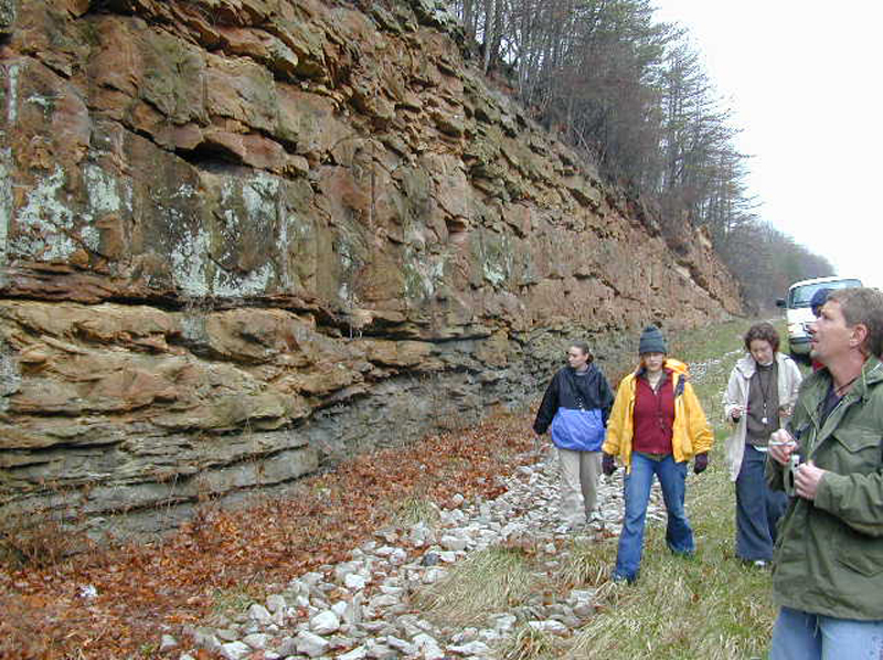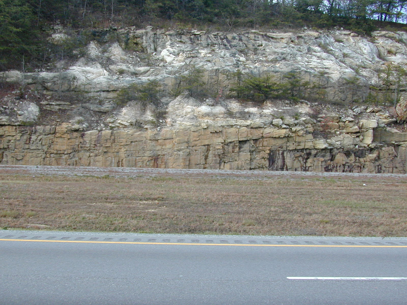 Pennsylvanian Appalachian Barrier Facies Road cuts on I. 75 16 miles west of Jellico, Tennessee of exposures of Pennsylvanian Pottsville