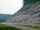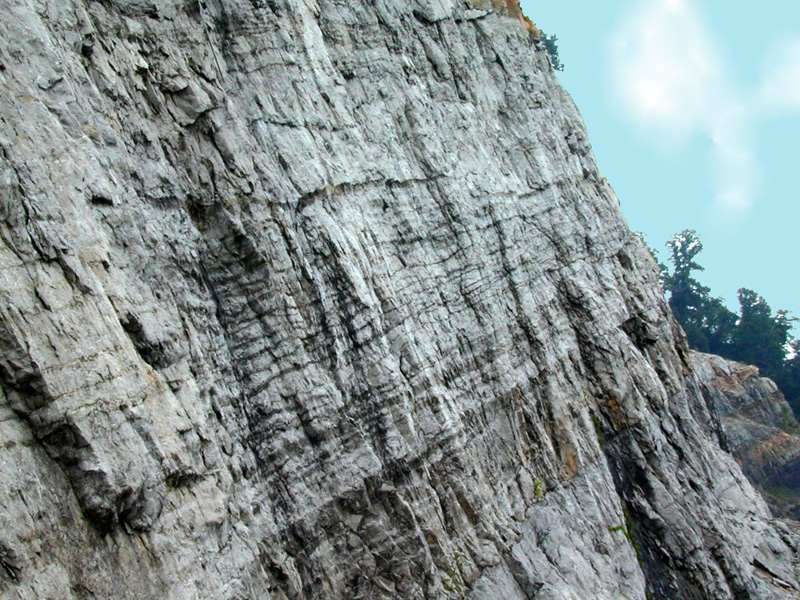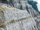 The Lower Newman Mississippian limestone is composed of relatively continuous beds of shallow water limestone that range from grainstones, often oolitic to to bioclastic wackestones and mudstones, that are locally mounded and channeled. bedding planes are irregular but sharp with some shale filled partings and there are prominent chocolate brown dolomitic siltstone bodies towards the top.