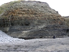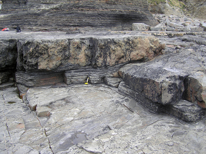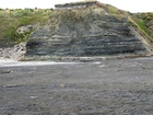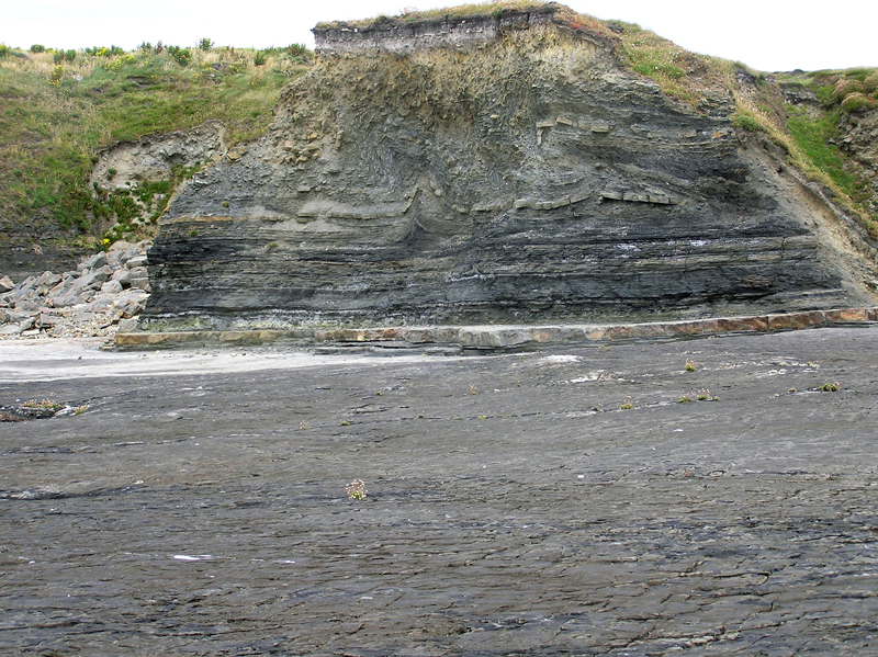 section at Dunmore Bay exposes finer grained deepwater fan lobes with very sparse shallow channeling and sand and