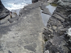 Locally sand volcanoes occur on bedding planes and were formed by sands transported upward from within slides by water released when the slide was compacted beneath its own weight. Flank slopes of the sand volcanoes reach 15° (Gill & Kuenen, 1958) with slightly concave outer slopes exhibiting flow runnels and ridges down the flanks with a central sand filled crater (Strachen, 2002). On other bedding planes ripples generated by currents in the deeperwater setting are common in the sandy sediments.