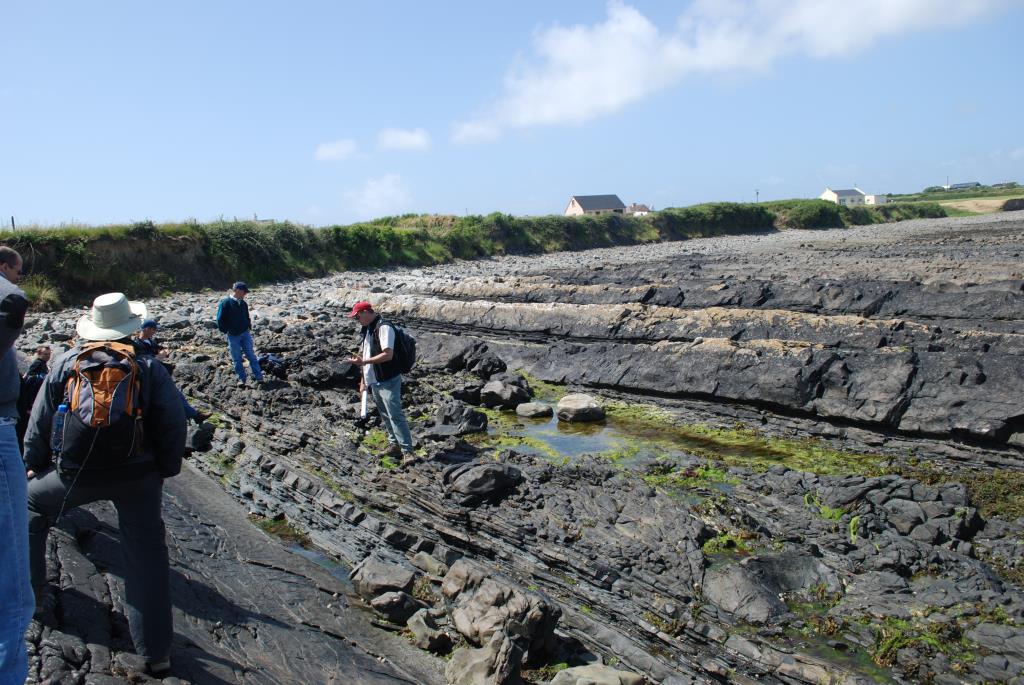 This locality exposes the upper Ross Formation as a series of amalgamated deepwater turbidite channels displayed in a wave-cut intertidal platform oblique to depositional strike.